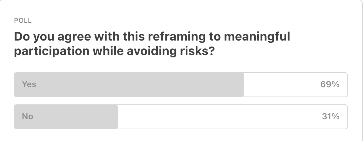 From last week’s edition where we discussed “Should BigTech CEOs be involved with AI regulations?“, poll results indicate that a majority of folks agree with a reframing that aims to meaningfully bring in BigTech CEOs into the AI regulations conversation rather than shunning them outright.